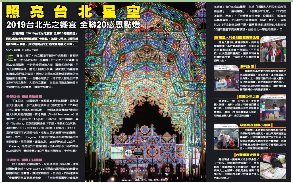 全聯打造「2019光之饗宴 全聯20感恩點燈」已然成為今年春節拍照打卡熱點,為期15天共吸引超過200萬人參觀,成功地將台北打造成國際觀光大城。