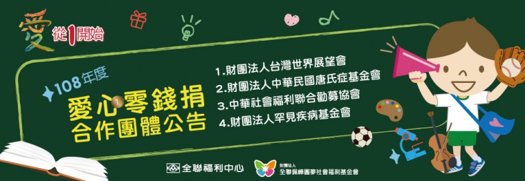 全聯福利中心【愛從1開始】108年公益勸募合作團體公告