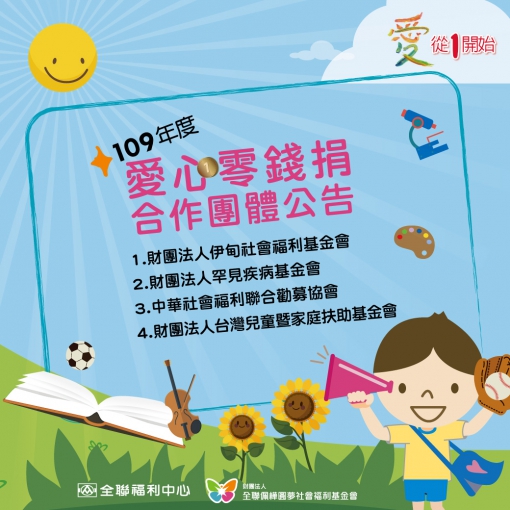 全聯福利中心【愛從1開始】109年公益勸募合作團體公告