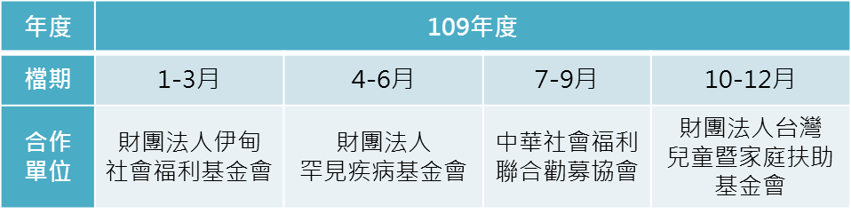 本年度徵選零錢捐合作團體之議題將延用以『弱勢兒童助學培力』為勸募議題,今年度共計收到16件申請案,經嚴謹的評選,以下為109年合作社福團體名單:.png)