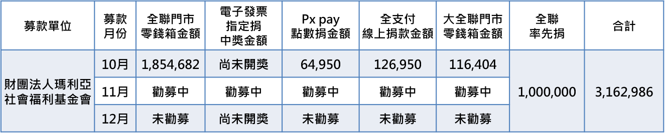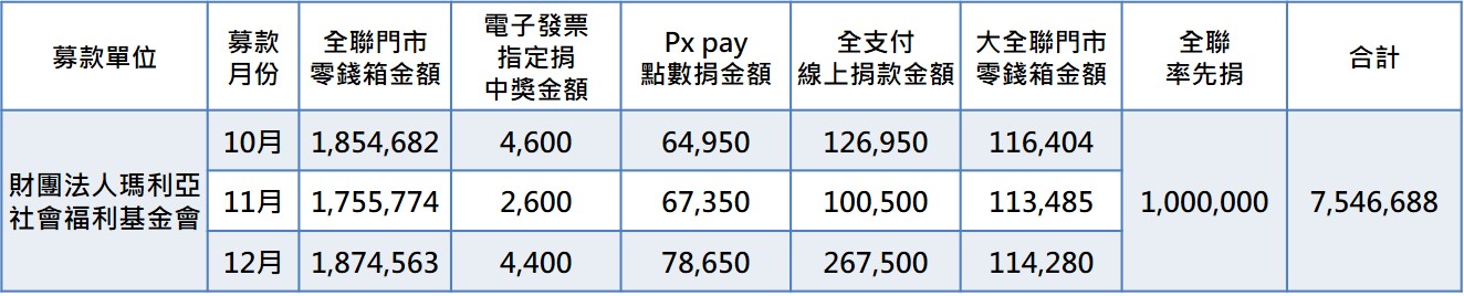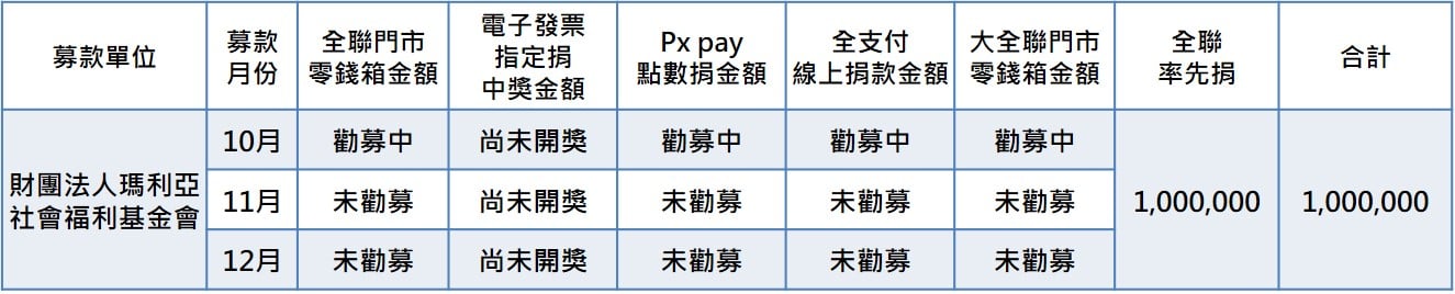 即日起至12月底可到全台全聯及大全聯門市捐出零錢、信用卡線上捐款,或線上支持PX Pay愛心捐款,使用全支付單筆捐款 $1,000/捐贈福利點數10,000點(含以上),就可以獲得襪禮一雙。