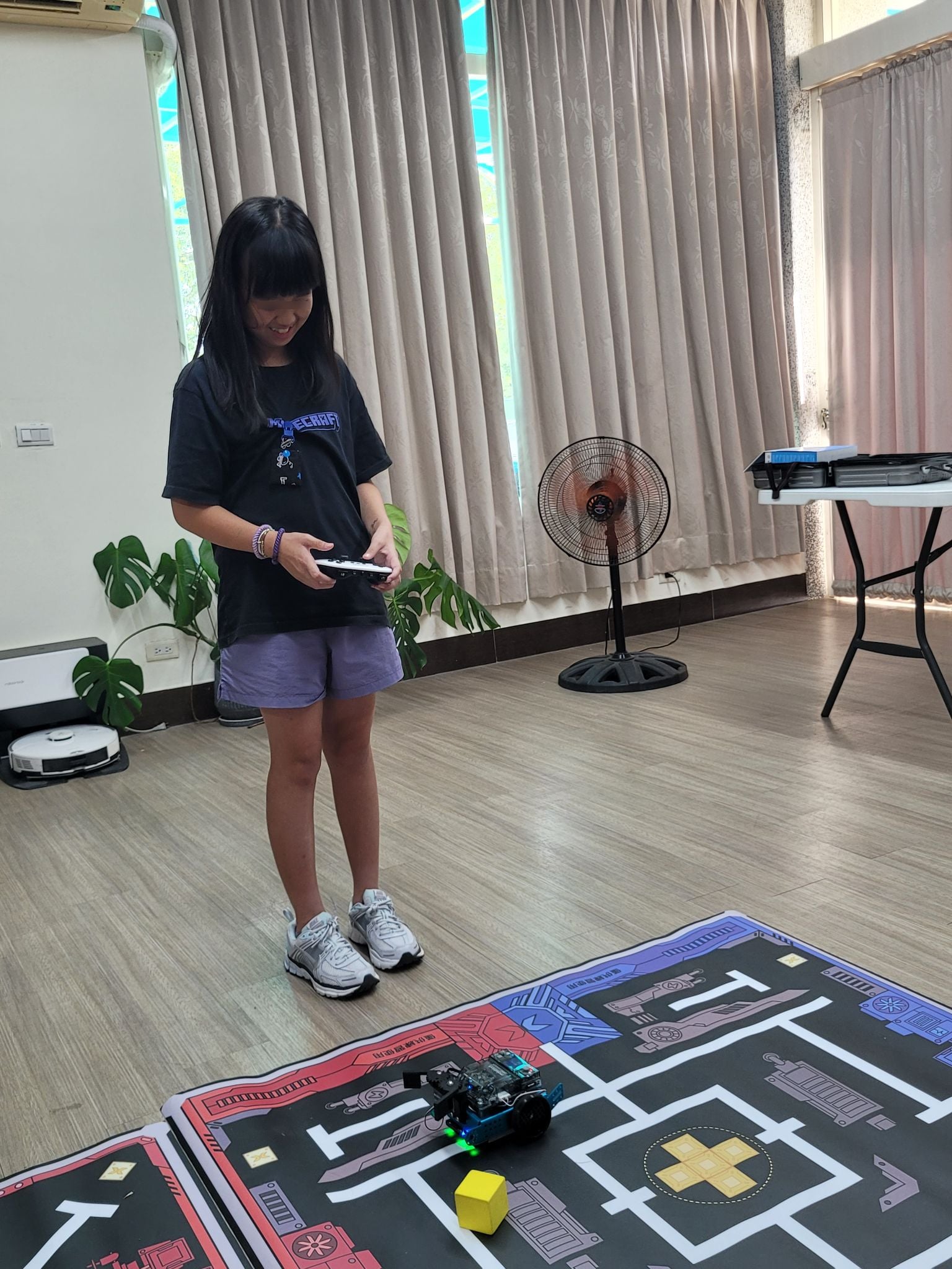當課程進入機器人操作時,挑戰也隨之而來,寫好的程式不一定能順利驅動機器人!要不停反覆測試與修正,但令人感動的是,沒有孩子選擇放棄,反而在一次次失敗中學會耐心與堅持。