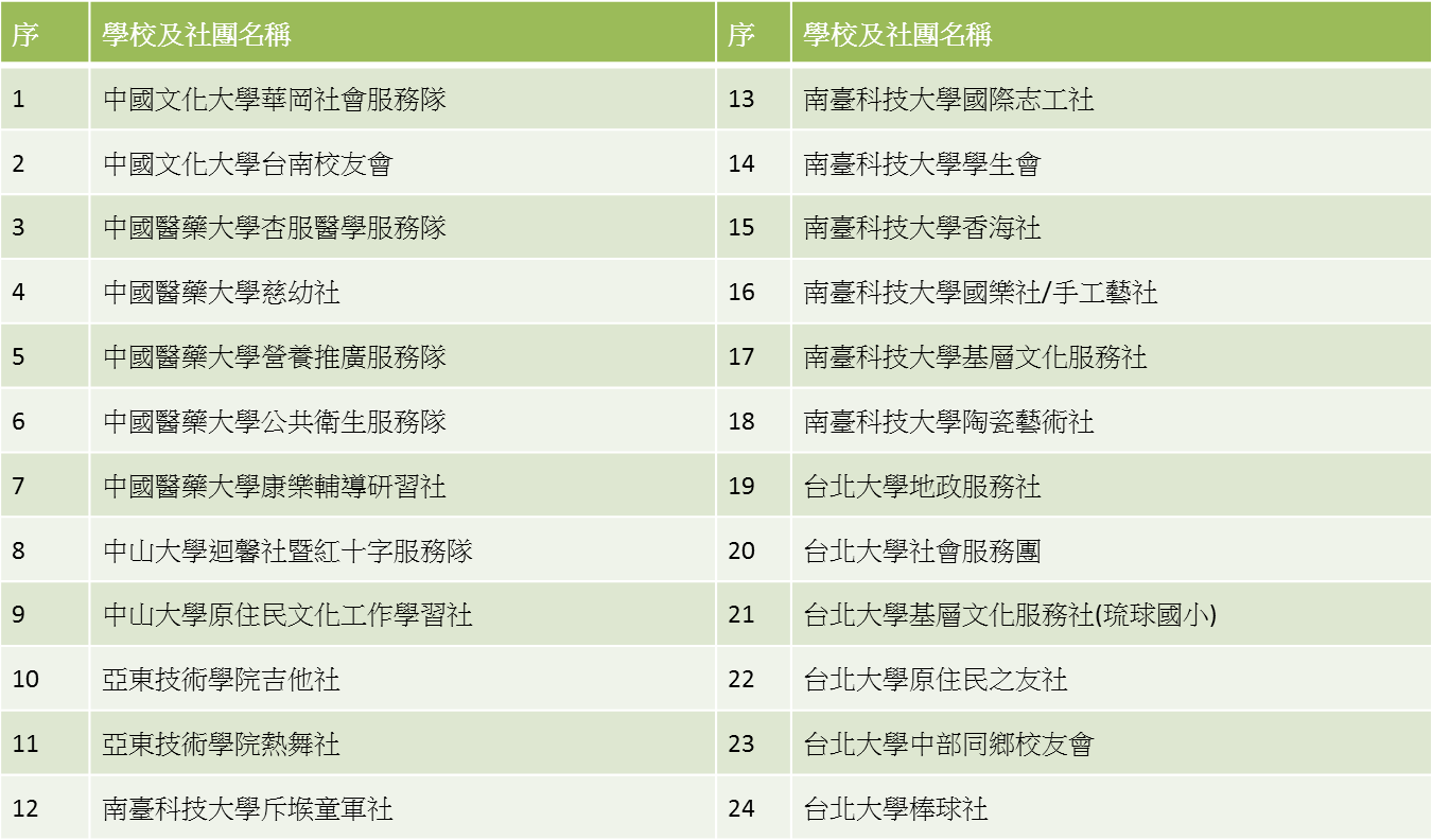 大專院校服務性社團支持計畫