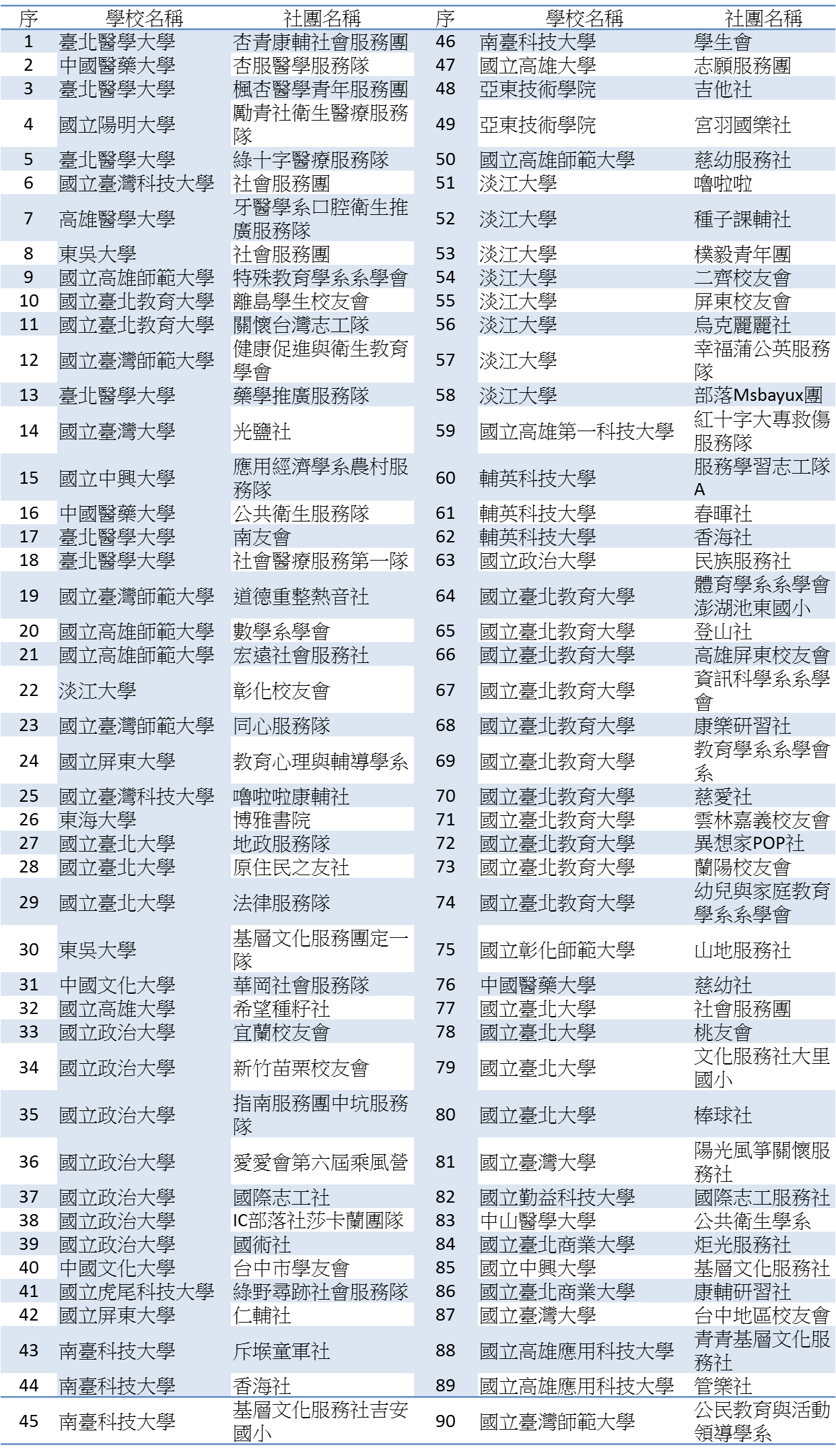 大專院校服務性社團支持計畫