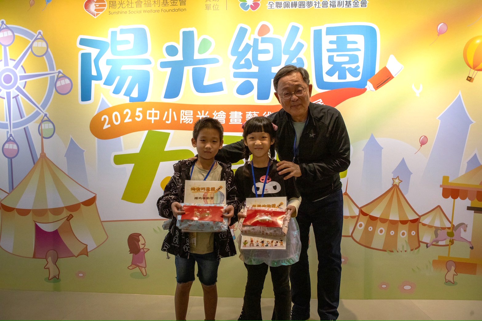 忻忻與弟弟一同受獎合影